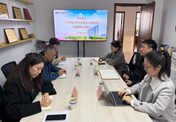 在常州信息职业技术学院,马克思主义学院院长施艳青分享了学院教学条件优化、思政菁英培育、思政资源建设、思政金课打造、红色文化融入“五大工程”建设实践。陆洋结合我校办学特色,介绍了“开放教育、职业教育、社会教育、老年教育”四类教育协同育人体系的构建成效。双方围绕思政金课打造、师生教学赛事共促等议题达成合作共识。