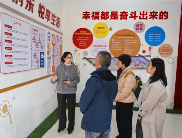 在府东社区,党总支委员曹瑜霞介绍了社区以推进网格化治理为抓手,打造“党建全局引领,阵地全面覆盖,网格全科服务,要素全域融合”的“四全”网格工作法。调研团队聚焦新时代文明实践阵地建设、志愿服务常态化开展等议题与社区工作人员深入交流。