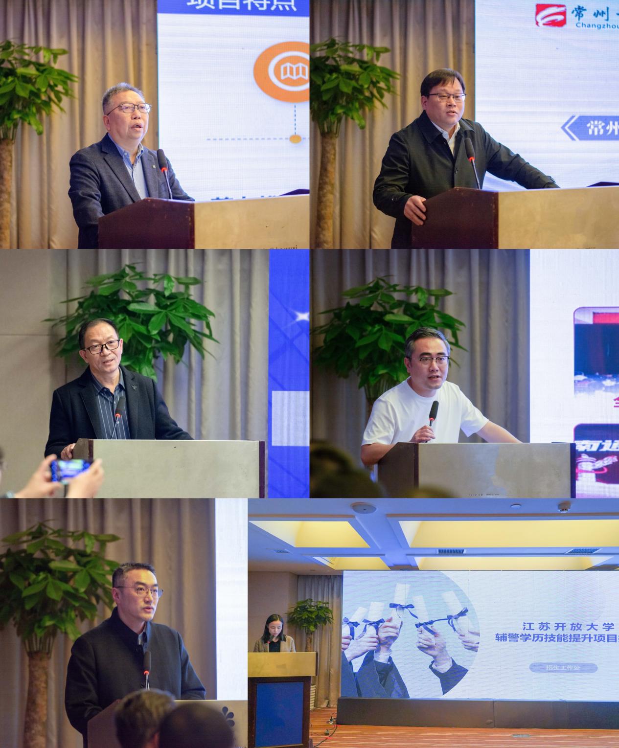 经验分享环节,五所市级开放大学分享了各具特色的实践成果。无锡开放大学校长田建军介绍了“无锡辅警学院”的成熟运行模式与未来发展规划;常州开放大学校长朱丹平分享了“两新”项目行动计划(“龙城新才”学院)的创新实施路径;宿迁开放大学副校长高恩广分享了“宿迁辅警学院”在终身学习实践方面的探索;南通开放大学招办主任刘苏鑫展示了南通特色学院项目的建设成果;泰州开放大学继续教育学院副院长康颖则从党建赋能的角度,探讨了新就业群体成长成才的有效路径。这些宝贵的一线经验为全省办学系统提供了丰富的借鉴和启发。