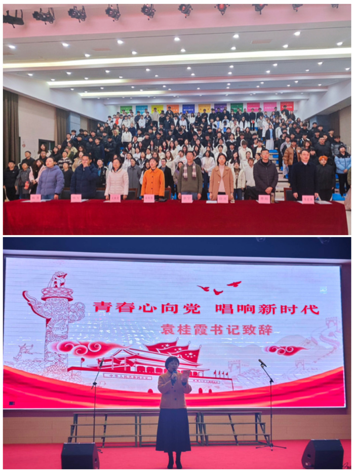晚会伊始,现场全体师生起立奏唱国歌,庄严的歌声奠定了活动的崇高基调。袁桂霞为活动致辞,她勉励广大青年学子要铭记历史,将“一二·九”精神内化于心、外化于行,用奋斗书写无愧于时代的青春华章。