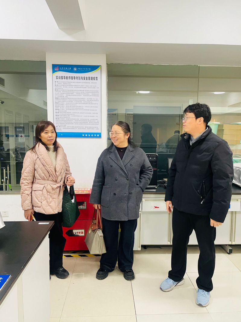 座谈会后,在谢伟芳主任的引导下,沈莉主任一行实地考察了环境生态学院实验实训中心,详细了解了实训中心的整体构架、各类实训设备的功能用途、实训项目开设及实验室的管理运行模式,对我校实训中心的标准化建设、专业化管理及产教融合的深度实践给予了高度评价。