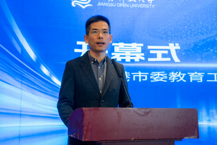 张家港市委教育工委委员、张家港开放大学党委书记徐健在报告中,对与会嘉宾的到来表示诚挚欢迎。他提到,张家港始终坚持将教育摆在优先发展的战略位置,学校以“家国情怀、工匠精神”为育人目标。他诚挚希望以此次会议为契机,深化与全省开放大学系统的交流协作,共同探索数字资源共建共享的有效机制。