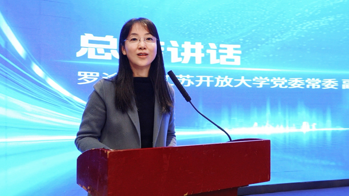 12月4日的数字资源共建共享研讨会上,江苏开放大学党委常委、副校长罗逾兰发表了《智汇苏韵,数塑未来:构建数字资源共建共享新生态》的讲话。罗逾兰副校长在讲话中指出,全省办学系统应深刻把握教育数字化新形势,坚持“和而不同”原则,推动职业教育、社会教育、老年教育、开放教育四类资源特色化建设与融通发展,构建有层次、能迭代、可激励的共建共享新机制。