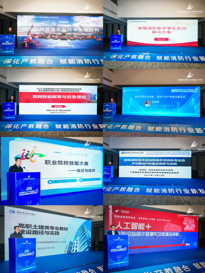 2025年12月12日—14日,2025年建筑消防行业产学研创新合作研讨会暨全国建筑消防行业产教融合共同体年会在徐州召开。建筑工程学院工程管理系副主任杨青、建筑设备系副主任蒋玉龙、专业负责人苏海花、骨干教师沈斐和青年博士教师王苏娜受邀参会。本次会议紧扣消防行业发展脉搏,聚焦建筑消防行业快速发展与技术创新背景下高素质技术技能型人才迫切需求,旨在打通教育链、人才链与产业链、创新链的衔接壁垒,探索推动行业科技进步与人才培养升级的新对策、新思路。