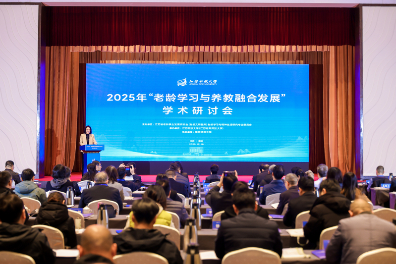 12月18日,由江苏省老龄事业发展研究会(老龄文明智库)老龄学习与精神生活研究专业委员会主办,江苏开放大学(江苏老年开放大学)承办,南京师范大学协办的“老龄学习与养教融合发展”学术会议在南京举行。江苏老龄事业发展研究会会长王燕文、副会长杨勇,江苏省教育厅校外教育培训监管与社会教育处副处长张赟,江苏开放大学党委副书记、校长张迎春等出席会议。会议汇聚了来自全省老龄事业研究机构、高校银龄学习中心、省示范性老年大学、开放大学办学系统及康养头部企业的近200位专家学者与实务工作者。党委常委、副校长杨羽主持论坛。