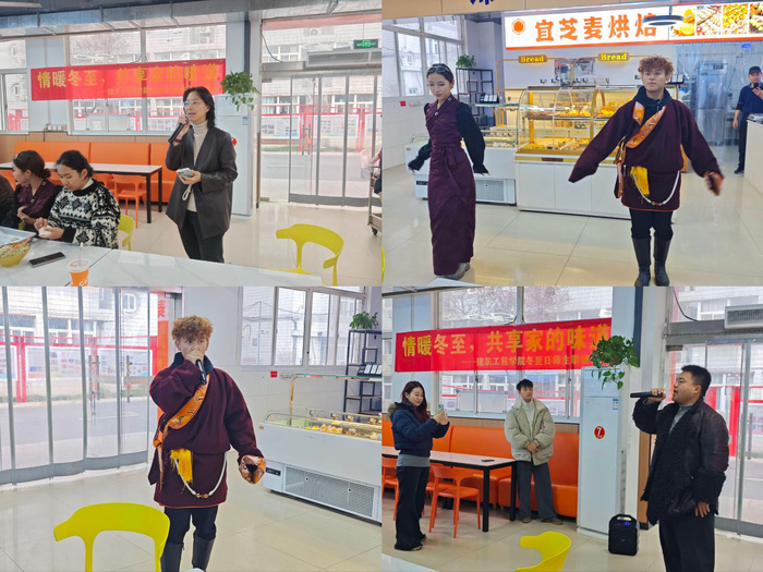 活动在徐亚的温情致辞中拉开帷幕。她向师生们送上了诚挚的冬至祝福,谈到冬至不仅是时序更替的节点,更是凝聚情感的纽带,鼓励大家在亲手制作美食的过程中,感受传统节气的文化底蕴,在协作互动中增进师生情谊,让校园成为充满归属感的“第二个家”。随后,来自学院的藏族学生们身着色彩艳丽的传统服饰登上舞台,为现场师生带来了一场极具民族风情的歌舞表演。悠扬的藏歌旋律婉转嘹亮,仿佛穿越雪域高原,传递着对节日的期盼与对师生的真挚祝福,独具特色的表演赢得了在场师生的阵阵掌声与欢呼声。