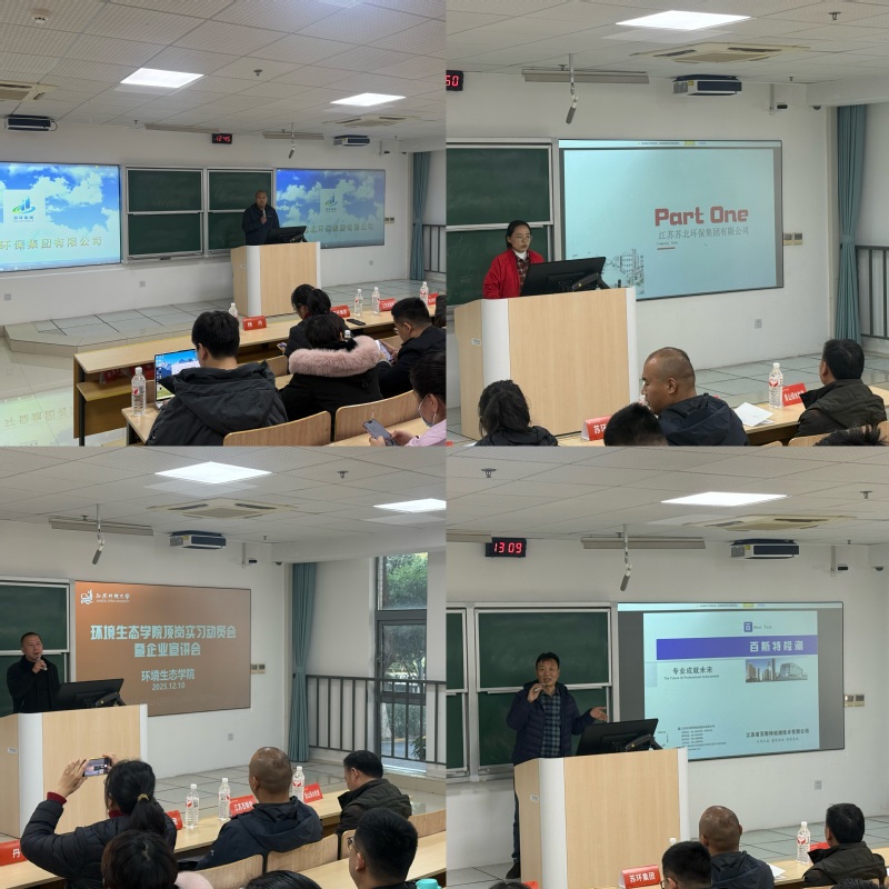 为帮助2026届毕业生明确岗位实习要求,搭建优质就业实习平台,12月10日和12月17日,环境生态学院在应天校区教学楼103召开2026届毕业生岗位实习动员会暨企业宣讲招聘活动。学院党总支副书记杨丹、各系部负责人,毕业班辅导员和班主任,相关企业代表与全体2026届毕业生共同参加了本次活动。
