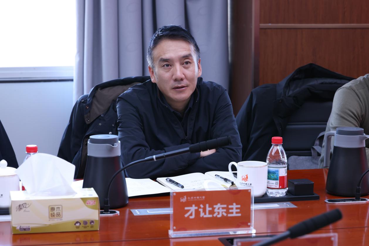 牛玉韬代表学校对才让东主书记一行表示热烈欢迎,并重点介绍了学校“四类教育”的协同创新与融合发展,以及在数智化转型、产教融合、师资队伍建设、浦口校区建设等方面的进展。他表示,学校将坚持“生态化、数智化、技能化、特色化和效能化”发展要求,着力构建高质量开放教育新格局。