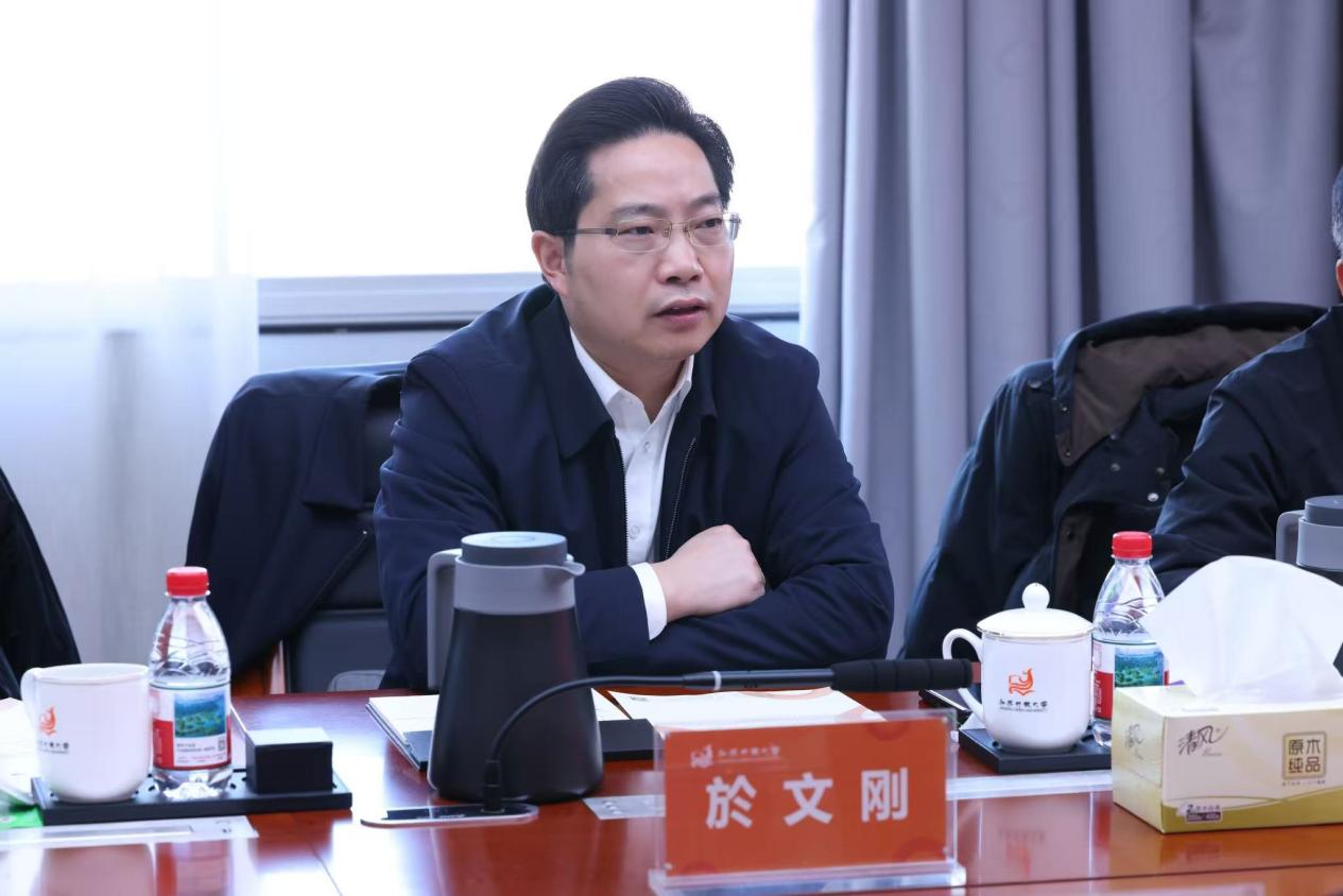 於文刚介绍了学校今年的相关办学成果,未来希望充分借助帮扶资源和办学经验,着力探索职业教育、开放教育和技工教育融合创新路径。