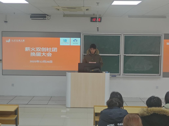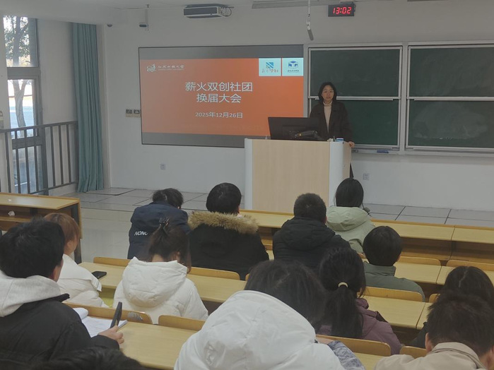 12月26日中午,我校薪火双创社换届大会在应天校区教学楼101室隆重举行。建筑工程学院党总支副书记徐亚、社团指导教师宋智华、孔萌,以及社团成员齐聚一堂,共同见证社团发展历程中的重要节点。