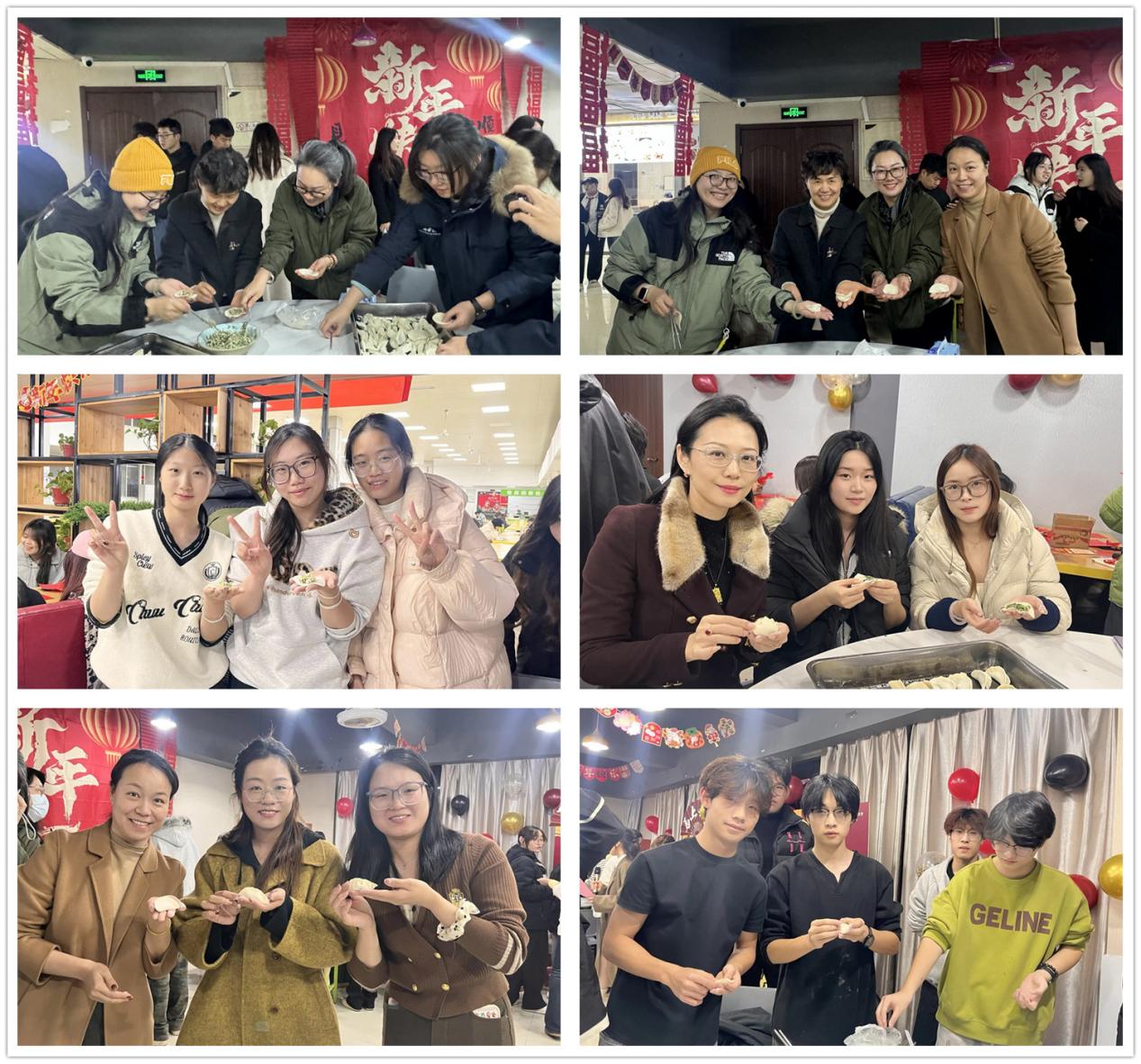 活动在充满烟火气的“美食DIY”环节中拉开序幕。师生们分组协作,亲手包制饺子和春卷。大家边学边做,交流着技艺和家乡的过年习俗,现场其乐融融。随后,热气腾腾的饺子和鲜香酥脆的春卷端上桌,师生共同品尝,分享这份亲手制作的美味,温情与喜悦同饺子的香味一道,萦绕在每个人的心间。