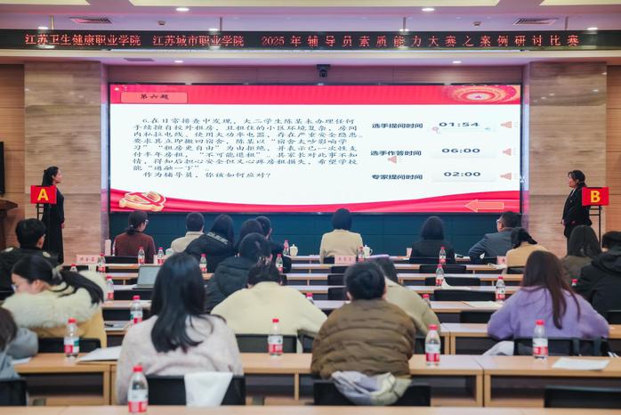 12月12日下午,江苏卫生健康职业学院承办案例研讨比赛,两校二级学院副书记、辅导员代表到场观摩。