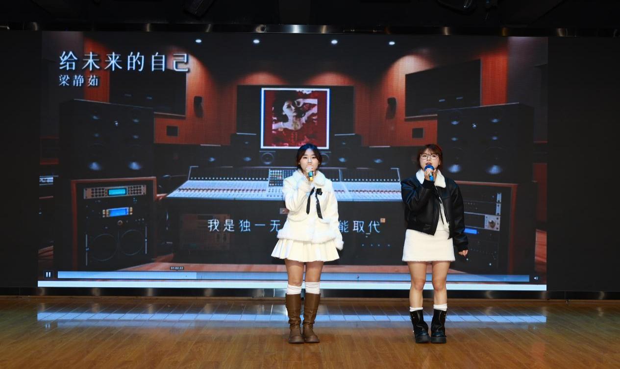 致辞结束后,文艺表演正式登场。《我们的歌》《给未来的自己》《词不达意》《蝴蝶》等经典歌曲,温情的旋律唤醒在场师生的青春记忆,瞬间点燃现场氛围。