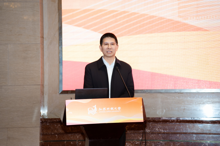 高邮市副市长周启泉致欢迎辞,向与会嘉宾介绍了高邮风土人情、产业发展情况。他表示,开放教育是推动产教融合、服务终身学习的重要途径,高邮市政府将全力支持开放教育的本地实践。