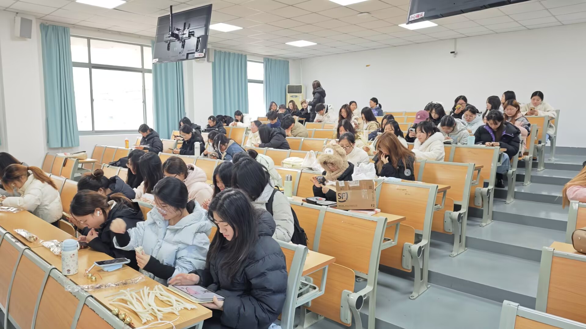 2025年12月25日12:00,商学院学生会生活部在东校区教学楼1-1阶梯教室成功举办“扭一朵雪花 暖一个冬天”创意雪花扭扭棒快闪活动。活动以迎接元旦为契机,营造浪漫温馨的冬日氛围,通过低成本、高趣味性的扭扭棒手工体验普及美育教育,传递“独一无二”的自我价值理念,帮助同学们缓解期末备考压力,活动吸引了学院70余名学生踊跃参与。