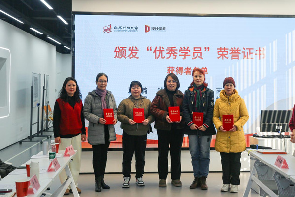邹佳在会上指出,此次的结业仪式是一个回顾总结、展望未来的契机。设计学院领导重视,推动项目落地,老师们认真备课,得到学员认可和好评,这些都是激励我们不断前行的动力。我们的高职学生面临就业压力,今后也让他们积极参与社区教育,老师们需要不断打磨教案,倒逼思考教学方式和内容,这些都是提升专业技能的有效举措,真正实现校社双方党建共建深度融合与拓展。