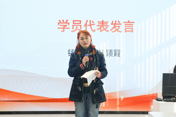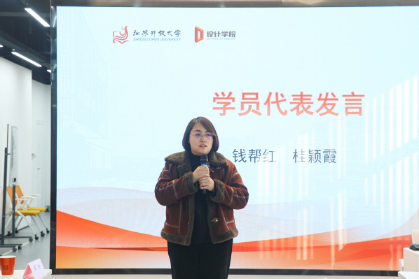 学员代表钱帮红和桂颖霞分别作了发言。她们感谢设计学院提供的学习机会,分享了学习中的收获与感悟,表示将把学到的知识运用到实际生活中,不断提升自我,丰富老年生活。