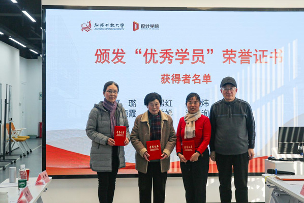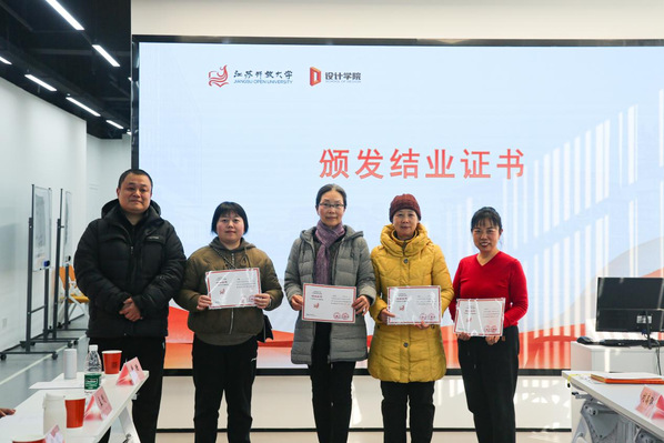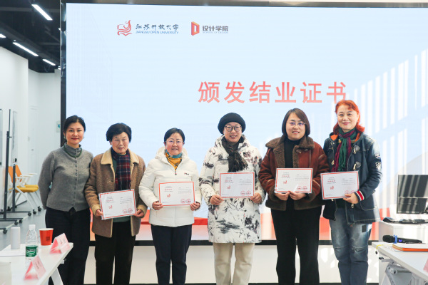 1月12日下午,设计学院在定淮门东校区实验楼文科实训室举办青石村社区《手机短视频制作(进阶班)》培训课程的结业仪式,第一次迎来银龄学员进校。此次活动,学院邀请了中央门街道民生保障办公室主任李昊伟,青石村社区党委书记、主任纪杭宁。仪式由设计学院办公室主任郭海燕主持,设计学院党总支书记邹佳、院长谢冬冰、副院长孟刚以及培训班全体成员、青石村社区工作人员、设计学院教师代表共同参加。