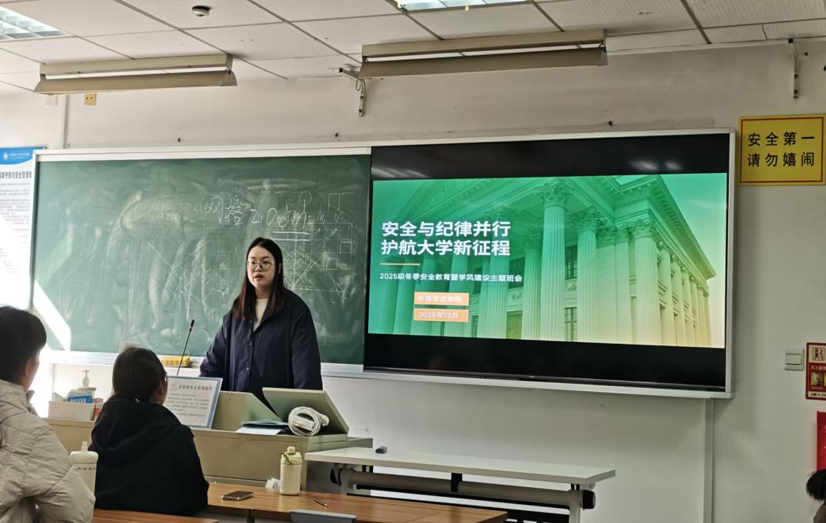 2024级辅导员彭晓以“大学生校园安全与成长规划”为主题召开班会,聚焦考风考纪,强调诚信考试是学术素养与职业发展的基石,倡导同学互助提醒监督;重申学业预警标准,引导学生主动查漏补缺、答疑解惑;普及宿舍用电、防火防盗及防诈骗等安全知识,传授防骗口诀与求助渠道,筑牢学生安全防线、助力科学规划成长。