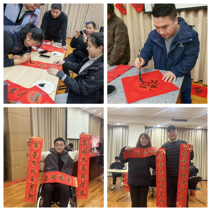 “迎春送福”的温情氛围,在现场活动的一片片欢声笑语中弥漫开来。两位关工委老师挥毫泼墨,为运动员、教练员现场书写春联、福字,每一笔都蕴含着真挚的祝福与期盼。在浓烈节日气氛的感染下,运动员们也纷纷执笔纳福,书写属于自己的福运。现场还有旱地冰壶、套圈、夹弹珠等趣味运动,运动员们摩拳擦掌,争相展示自己的风采。大家一起做灯笼、写福字,把对新一年的美好祈愿写进对联,在愉快的新春氛围中展望未来。