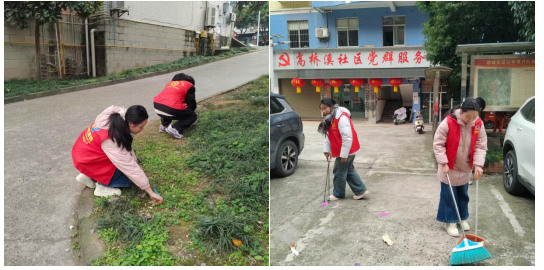 2026年2月初,2024级物联网应用技术专业邓欣语同学回到家乡所在社区,投身环境整治专项行动。清扫主干道落叶、铲除砖缝墙角干枯杂草、清洗宣传栏、清理楼道堆积杂物……冬日寒风里,她手持扫帚与小铲刀,细致排查每一处卫生死角。