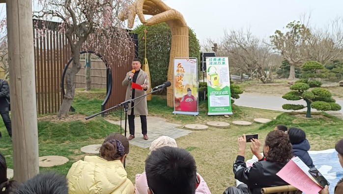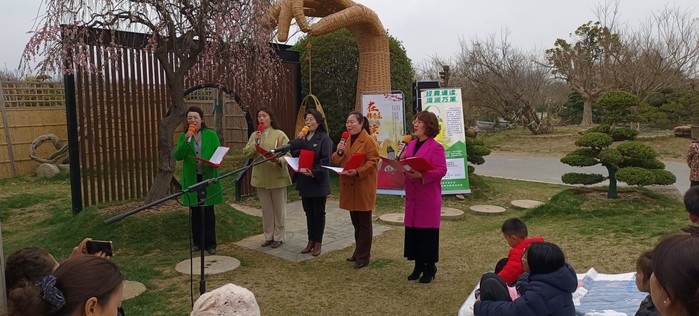 “春风得意·马不停蹄”篇章中,李伟民、周亚军、王爱梅等分别朗诵《风暖春声慢》《岁月》《我有一个春天》等作品,如皋市诗词楹联学会的会员们即兴创作,《镠马庄放歌》《七律·咏镠马庄》等一首首新作在现场传诵,诗韵悠扬,春意盎然。