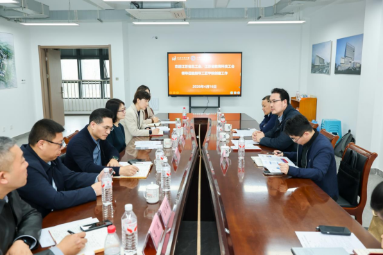 杨羽首先对省总工会、省教育科技工会领导一行的到来表示热烈欢迎和衷心感谢。她简要介绍了学校的办学历史、办学条件及办学规模,重点介绍了学校在产教融合、社会教育、学分银行、老年教育方面的标志性成果与独特优势。结合江苏制造强省建设与产业升级需求,系统阐述了共建工匠学院的重大意义与建设思路。她表示,学校将把工匠学院作为“十五五”重点工程全力推进,深化与工会系统合作,全力打造特色鲜明、省内领先的工匠人才培养标杆,为江苏从制造大省迈向制造强省提供坚实人才支撑。