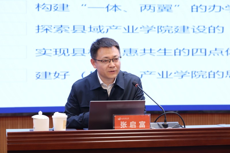 4月15日,我校教育数智化系列论坛第24期开讲。本期论坛特邀浙江工商职业技术学院党委副书记、院长张启富教授作题为《县域产业学院“三同”建设模式的“浙工商”实践》专题报告。全体在校校领导、中层干部、系主任,相关职能部门人员及各产业学院骨干教师参加论坛。论坛由党委书记丁荣余主持。