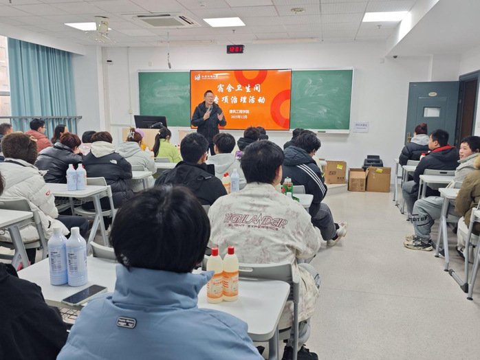 岁末迎新之际,为深化“五育并举”育人实效,巩固学期文明宿舍建设成果,建筑工程学院于12月下旬启动“宿舍卫生间专项清理”行动。本次行动以“辞旧迎新筑净居,共建文明新家园”为主题,覆盖全院198间宿舍,通过“学院统筹-班级实施-全员参与”三级联动模式,打造安全卫生、文明和谐的居住环境,助力学子以崭新面貌迎接新年。学院为各班统一配发洁厕灵、84消毒液等清洁物资,组建党团干部、宿舍长、学生骨干三级清洁先锋队,带头对卫生间墙面、地面、洁具、排水设施进行深度清洁消毒。院学工办主任江胜锋在动员会上特别指出,“宿舍卫生间作为公共生活区域,其整洁程度直接关系到学生的健康水平与生活体验,也是衡量宿舍文明程度的关键指标。”为激发全员参与热情,活动同步配套“流动红旗”评比,将清洁成效与班级考核、个人德育分挂钩,形成“比学赶超”的良性竞争氛围。回望全年,学院以“安全、卫生、文明、和谐”为目标,构建起“教育引导-榜样带动-制度保障-全员参与”的育人体系。从安全隐患专项整改到“样板宿舍”观摩评比,从“科学收纳”培训到“变废为宝”DIY实践,从常态化“流动红旗”评比到实战化火灾逃生演习,逐步形成“学院-班级-宿舍-学