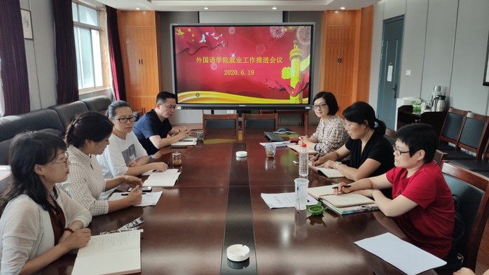 2020年6月19日上午,外国语学院再次召开就业工作推进会议。本次会议由学院党总支部副书记章琼主持,学院就业工作领导小组成员参会。会议交流了上次就业工作会议部署的学生就业工作落实情况,并进一步明确今后的就业工作重点。会上,党总支部副书记章琼首先发言,她肯定了自上月就业工作会议之来的工作进展。截至6月18日,外国语学院2020届48位毕业生中,已就业人数12人,占25%,另有7人考研成功,就业率暂居校本部七个学院前列。邹本平老师介绍了她在学生就业工作方面的过往经历和经验,并建议老师们针对不同学生要制定不同对策,切实有效地推进就业工作。接下来,狄左丹老师、王雁老师、杨绘荣老师、周桔老师和曹海霞老师分别介绍了各自负责包干的同学就业情况,排查出10位同学在就业方面切实存在困难。最后,党总支部副书记章琼总结了会议。她对就业工作领导小组的成员提出“三个到位”。第一,认识到位。就业关乎民生,每一位老师都要深刻领会省教育厅视频会议精神,充分认识到就业是教书育人工作中必不可少的一环,同时也为校友工作奠定良好的基础。第二,沟通到位。就业工作组的老师不仅要加强与学生的沟通和交流,更要增加小组各成员之间的沟通