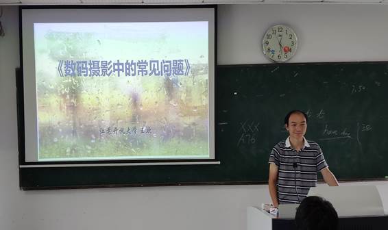 6月12日中午,艺术学院绘美画社在应天教学楼202教室举办摄影讲座。社团指导老师王欢围绕“数码摄影中的常见问题”为社团成员及学生会部分成员带来了一堂生动精彩的摄影课。王欢老师结合自身摄影创作的体会,从摄影的基本知识、相机的基本操作、影响照片质量的因素及手机摄影等方面进行了深入浅出地讲解。他通过各类范例照片,用轻松幽默的语言生动细致地向大家讲授了摄影中对光圈、快门、白平衡等灵活运用的各种技巧及日常拍摄过程中可能遇到的问题,并鼓励同学们拿出手机来现场实践,强化所学技巧,与大家进行现场交流与互动讨论,讲座气氛十分活跃。此次讲座通俗易懂,既有专业知识的讲解又有操作技巧的演示,学生们不仅收获了丰富的摄影知识,更感受到了摄影艺术的独特魅力,让同学们在紧张学习的同时能够培养自己的兴趣爱好,使疫情防控期间校园封闭的大学生活更加丰富多彩。 (图:陈龙 文:张洁)