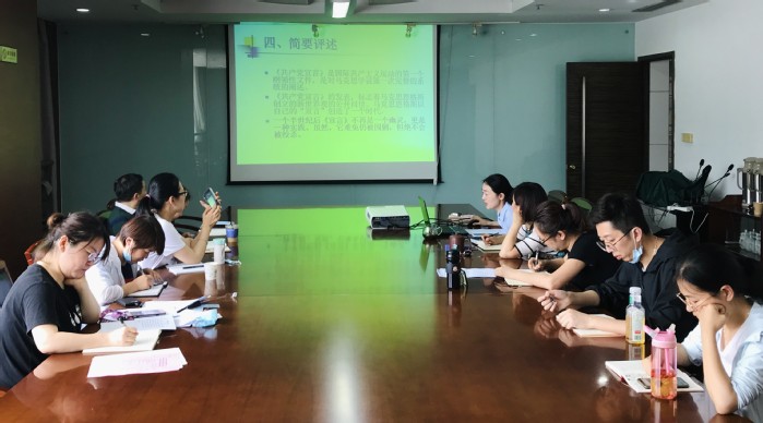 “一个幽灵,共产主义的幽灵,在欧洲游荡……”2020年6月17日,艺术学院党总支部在定淮门校区开展2020年度第二次集中学习,全体党员围绕“马克思主义经典”进行专题学习并交流研讨。作为重点发言人,黄一斓同志从写作背景、文章结构、基本内容、重点段落、经典表述等方面对马克思主义的经典著作《共产党宣言》进行了全面的解读。在此基础上,黄一斓同志进一步谈论了研读经典的体会:学习马克思主义基本理论是共产党人的必修课,重温《共产党宣言》,就是要深刻感悟和把握马克思主义真理力量,坚定马克思主义信仰,追溯马克思主义政党保持先进性和纯洁性的理论源头,提高运用马克思主义基本原理解决当代中国实际问题的能力和水平,把《共产党宣言》蕴含的科学原理和科学精神运用到统揽伟大斗争、伟大工程、伟大事业、伟大梦想的实践中去,不断谱写新时代坚持和发展中国特色社会主义新篇章。习近平新时代中国特色社会主义思想,以一系列原创性观点极大丰富了马克思主义,把马克思主义中国化推进到一个新的阶段,是当代中国的马克思主义,是21世纪的马克思主义。这一思想,体现了今天中国从“赶上时代”到“引领时代”的伟大跨越,体现了我们党始终站在时代前列、以