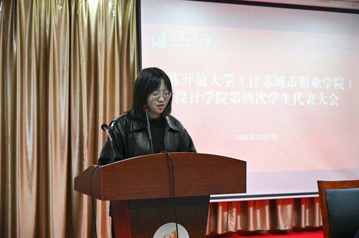 为保障和维护学生参与民主管理的权利,为更好地服务同学,11月7日,设计学院第四次学生代表大会于东校区图书馆五楼报告厅召开。设计学院党总支副书记院娅、学工办副主任朱福硕、全体辅导员及130名学生代表参加此次会议,大会由设计学院团总支副书记孙晨主持。会议在庄严的国歌中拉开序幕。院娅为大会致辞,代表学院党总支对本次学代会的召开表示祝贺,对第三届学生委员会所发挥的积极作用和作出的贡献表示肯定和衷心感谢。同时,她对学生干部提出四点希望和要求:一是提高政治觉悟和理论素养。思想上要始终保持与党同心同行,为学院青年提供正确的思想政治引领;二是增强组织协调能力和团队协作精神。要能够在团队中发挥关键作用,协同推动工作,团结和组织好广大学院青年;三是保持创新意识、提升实践能力。要保持敏锐、善于发现问题,用创新性思维主动谋划实践活动、推动工作;四是保持良好的道德品质。要以身作则,严于律己,为同学们树立起正直的设计学院学生干部形象。希望即将选举产生的新一届学生会,传承“务实肯干”优良传统,落实“全心全意为同学服务”的工作作风,再创新成绩,为推动学校学院高质量发展贡献青春力量。接着,设计学院第三届主席团成员包珍妮