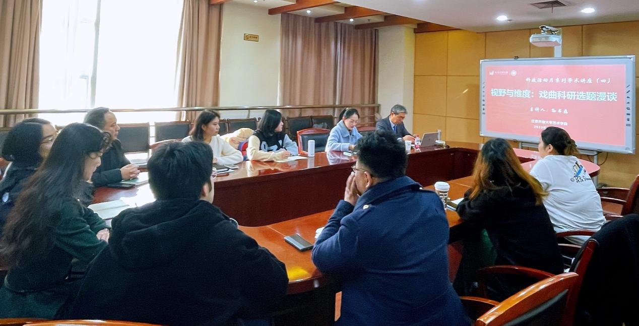 11月15日上午,艺术学院在定淮门校区综合楼二楼第一会议室举办“科技活动月系列学术讲座”第四讲,邀请南京大学文学院戏剧影视研究所副所长、博士生导师孙书磊教授,开展题为“视野与维度:戏曲科研选题漫谈”的学术讲座。此次讲座由艺术学院院长、党总支副书记黄一斓主持,戏曲艺术系全体教师参加。在讲座中,孙教授首先分析和总结了近十年国家社科基金艺术学戏曲类申报项目的动态以及立项课题的特点,对选题视角、题目架构等方面做了具体的举例论证。然后,孙教授对国家级戏曲学选题的趋势与热点、选题导向、课题填表注意事项以及其他类别项目申报与选题进行了讲解和指导,使教师们对于国家社科基金艺术学项目的申报要求有了更深入的了解,也为科研选题提供了新的思考方向。讲座最后,戏曲系青年博士教师就目前课题申报的相关问题与孙教授进行了充分的交流,孙教授针对教师课题申请书中的具体问题进行了一对一的深入剖析,并给予了相应的意见和建议。孙教授的整个讲座内容丰富、实用,对于教师们的学术研究具有重要的指导意义。本次科研选题与申报指导讲座,拓宽了教师们的学术视野和研究思路。此次学术活动,使教师们更加清晰直观地了解到学科在申报类别中的方法和技巧