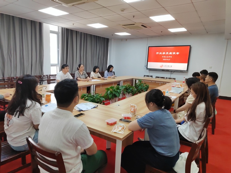 为深入了解开放学员学习工作状况,提升服务质量,6月10日,环境生态学院举办开放学员座谈会。学院党总支书记段英、副书记杨丹、副院长秦品珠、开放学员管理教师吴忌、学务导师李博文以及开放学员代表参加本次会议。座谈会围绕开放学员学习、活动、心理等多方面需求展开充分交流,调研学员们对学员支持服务的满意度,了解学员们在学习过程中的困难和在校学习期间的诉求,聆听他们对今后学院开展线下教学、校园文化活动等方面的意见建议。开放学员代表踊跃发言,纷纷分享了自己在江苏开放大学的学习经历和体会。大家一致对学院提供的教学服务表示认可,为学院如何继续提升学习支持服务质量、开展丰富的学生活动积极建言献策。针对开放学员提问的学习平台使用、考试准备、毕业条件等方面,学院现场给予详实解答。最后,段英作总结讲话。她对大家充分利用业余时间,积极报名参加开放教育学习给予了肯定,感谢大家为学院发展提供了宝贵意见,希望学员们牢固树立终身学习理念,妥善处理好学习、工作和家庭关系,在笃学中增强能力,在创新中主动作为,在实干中奋进争先。本次座谈会进一步加强了学院与开放学员的沟通交流,加深了学员对学院发展的了解。学院将持续倾听开放学员心声