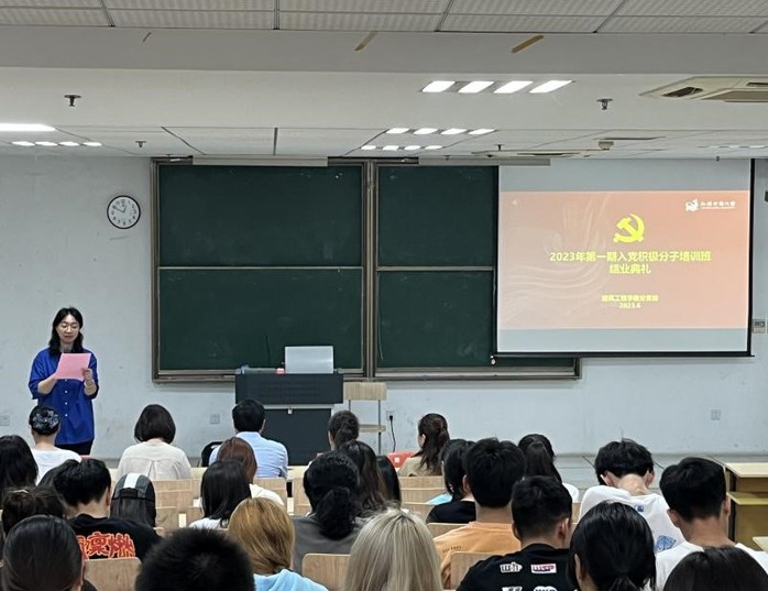 6月21日中午,2023年第一期入党积极分子培训班结业典礼在应天校区教学楼103教室顺利举行。建筑工程学院党总支书记曹永、信息工程学院党总支书记刘慧英、艺术学院(健康学院)党总支副书记张洁、环境生态学院第一党支部书记陈婉、建筑工程学院第二党支部书记仲青以及全体参训入党积极分子参加仪式。典礼由建筑工程学院党总支副书记徐亚主持。应天校区2023年第一期入党积极分子培训班从5月30日开班到6月13日结束,历时两周。建筑工程学院分党校对本次培训精心准备,采取专题讲座、个人自学、小组讨论、撰写小结、考试考察等方式进行。在7次讲座中,主讲老师都是来自我校的专家和教授,老师们精心备课,从不同的角度和层面对学员进行了党的基本理论和政策教育,为同学们在思想上入党奠定了理论基础。 校党校副校长、纪委办主任胡大华主讲“从严要求、做有理想的大学生”校图书馆馆长谢冬冰主讲“塑造新自我、创造新未来”校团委书记包慧君主讲“回顾百年团史、汲取青春力量”环境生态学院第一党支部书记陈婉主讲“奋进新时代、争做坚定有为的青年马克思主义者”马克思主义学院教授张玉兰主讲“坚持党对一切工作的领导”校党委常委、党校副校长、组织部部长