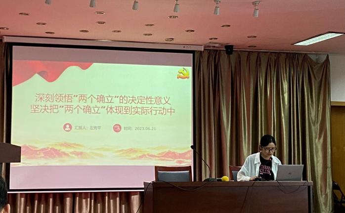 为进一步深入开展学习贯彻习近平新时代中国特色社会主义思想主题教育,6月21日上午,商学院第一党支部书记面向学院全体教职工及支部党员讲授主题为《深刻领悟“两个确立”的决定性意义 坚决把“两个确立”体现到实际行动中》专题党课。党课主要从“两个确立”是新时代实现伟大变革的关键所在,“两个确立”是新征程上赢得未来的必然要求以及坚决把“两个确立”体现到实际行动中三方面进行深入解读。随后,朱长春和何冬梅两位同志分别围绕该主题,结合本人工作作重点交流发言。朱长春从科研兴院、严以创新,实验实训、严以创绩,招生管理、严以创优三方面,强调“两个确立”是推动中国特色社会主义实践发展的必然遵循。何冬梅阐述了“两个确立”是实现第二个百年奋斗目标的最大政治保证,围绕如何做开大发展奋进者提供了自己的思路。本次支部书记讲党课,是扎实推进学院党建与业务深入融合,以高质量党建引领和促进学院事业高质量发展,确保学院高质量落实各项任务取得实效的生动体现。(图/文:何冬梅审核:董昕灵)