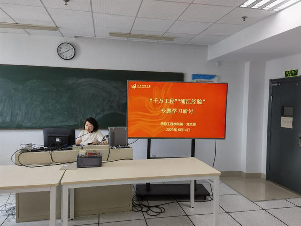 为深入开展学习贯彻习近平新时代中国特色社会主义思想主题教育,信息工程学院第一党支部全体党员2023年6月14日下午在应天校区教学楼1006召开主题教育专题学习研讨会,跟进学习习近平总书记重要讲话和指示批示精神。会议由支部书记许小媛主持。许小媛首先带领全体党员学习了习近平法治思想、浙江“千万工程”经验案例、“浦江经验”调研情况报告等上级文件精神,传达了普通党员主题教育任务清单。支部全体党员立足个人工作岗位,围绕“千万工程”和“浦江经验”交流学习体会和感悟。朱颖雯、乔宇龙、李文清、魏薇四位同志联系思想和工作实际,作了重点交流发言。四位同志表示,新时代下,青年教师是传承教师前辈优秀教学经验的重要中间人,是薪火相传的重要接班人。因地制宜、因地而异是“千万工程”中对于乡村振兴最直接有效的方式之一,在教学中,面对学生“因材施教”与之不谋而合。教师深入到学生中间去,深刻理解学生们的真切需求,给予最真实有效的帮助指导,“浦江经验”则具有深刻的指导意义。通过本次主题教育学习讨论活动,让党员同志加深了对学习贯彻习近平新时代中国特色社会主义思想主题教育的认识。全体党员根据主题教育“学思想、强党性、重实践、建