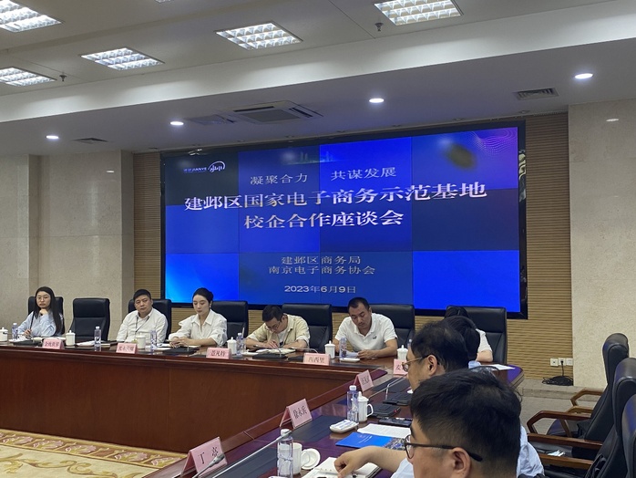 2023年6月9日,建邺区国家电子商务示范基地校企合作座谈会在建邺区建邺大厦二楼会议室召开,南京市市场监督局、建邺区商务局、南京市电子商务协会、部分在宁高校、建邺区优秀电商企业代表出席会议,我校商学院副院长徐永兵、国际电子商务系教师王礼斌应邀出席会议。会议由建邺区商务局、南京市电子商务协会主办,致力于解决电商企业用人短缺及人力成本高的问题,为进一步探索校企人才合作模式搭建交流平台。会上,建邺区商务局局长陈峰飞对建邺区经济与产业发展现状进行说明,并指出当前电子商务行业存在人才供需不匹配等问题;与会高校代表介绍了各自院校的电子商务专业建设情况;徐永兵向与会企业介绍了商学院人才培养、学科建设、校企合作等方面的特色和优势,并对未来的校企合作表示期许和欢迎。与会企业代表也就企业发展和用工需求进行说明,并与高校方进行友好洽谈和展望。本次会议为校行政企四方构建长久有效的合作模式提供了新思路,为高校为区域经济发展做出更多贡献奠定了基础。 (图/文:汪礼斌;审核:徐永兵)
