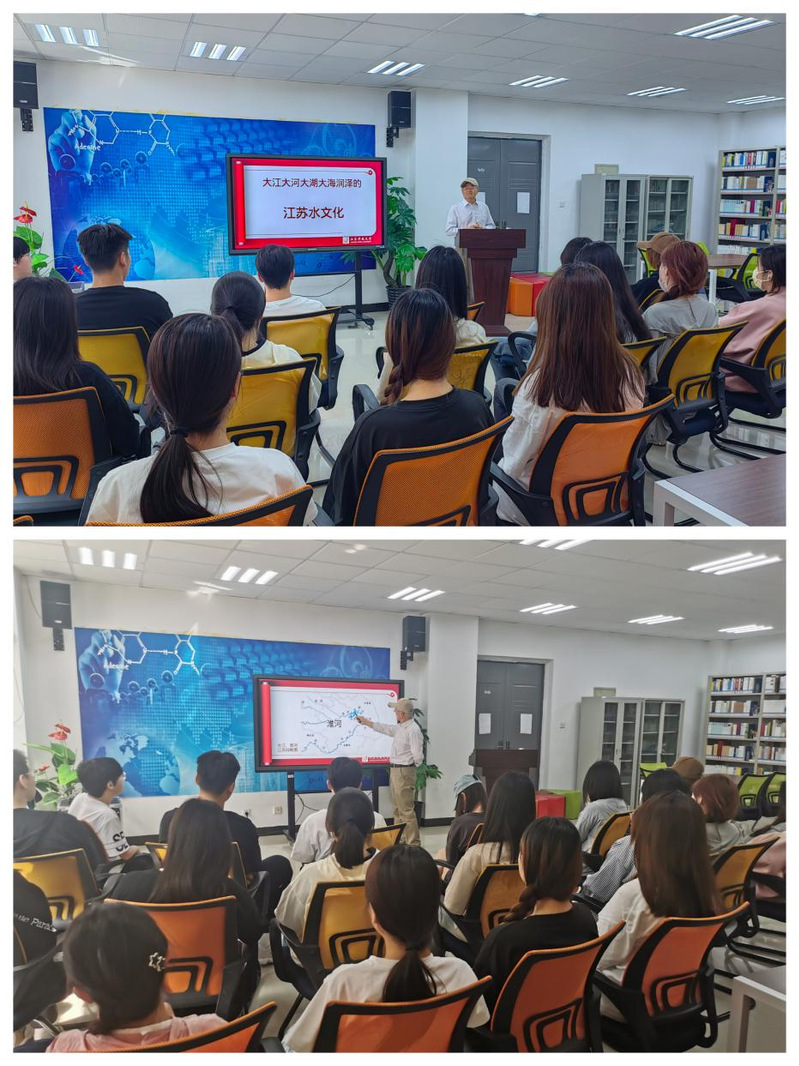 为深入学习贯彻党的二十大精神,提升学生人文素养,5月23日下午,艺术学院邀请校关工委委员徐四海教授,在应天校区图书馆1004室为入党积极分子、少数民族学生以及全体辅导员带来了一堂内容丰富、寓意深刻的弘扬中华优秀传统文化专题讲座。徐四海教授以《大江大河大湖大海润泽的江苏水文化》为题,从江苏的水韵生态引入,介绍了滚滚东流的长江、贯穿南北的大运河、烟波浩渺的太湖等江河湖海所彰显的江苏之美,结合江苏水文化的起源、城市水系的文化脉络、水利发展和水生态保护三个方面为同学们讲述了江苏水文化的历史变迁与发展现状。徐教授用丰富详实的史料典籍,深厚绵长的文化情怀,让在场师生领略到江苏水文化的自然生态与人文魅力,更深刻领悟到中华优秀传统文化的博大精深、源远流长。讲座最后,徐教授与同学们围绕如何继承和发扬江苏水文化展开深入交流,现场气氛热烈。本次讲座也是推动学院“一院一品”文化建设工作的有力举措,培养了学生对中华传统文化的认同感与自豪感,使学生进一步坚定文化自信,更加自觉地成为中华优秀传统文化的继承者和传播者。艺术学院将继续探索人文教育融入思想政治教育的路径,发挥校园文化活动和第二课堂的育人功效,让中华优秀传
