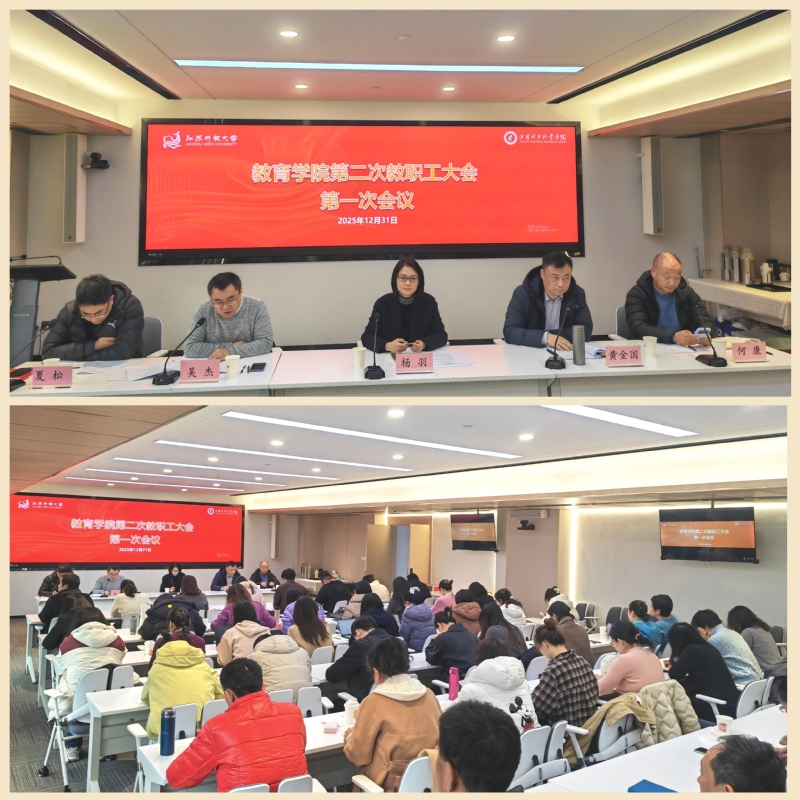 2025年12月31日下午,教育学院第二届教职工大会第一次会议在定淮门校区综合楼八楼会议室召开。本次会议由教育学院党总支书记黄金国主持,学院全体教职工参加会议。校党委常委、副校长杨羽到会指导并讲话。正式会议前召开预备会议,全体教职工听取了大会筹备工作情况报告,通过新一届执委会委员候选人预备人选名单、会议议题和议程等重要事项。随后,教育学院第二届教职工大会第一次会议在庄严的《国歌》声中开幕。学院院长吴杰代表学院领导班子向大会作2025年度教育学院工作报告。报告从教学改革、人才培养、师资建设、科研创新等方面回顾和总结了学院一年来事业发展取得的成绩,并明确了学院2026年的工作思路与重点任务。紧接着,吴杰作了学院2025年度经费使用情况报告。大会严格按照选举办法和程序,选举产生了新一届教职工大会执行委员会,吴杰等5人当选为执委会委员。会议期间,与会教职工进行小组会议讨论,认真审议了学院工作报告和大会决议(草案),围绕学院发展改革中的问题和教职工普遍关心的事项积极建言献策,在人才培养、教学改革、科学研究、师资建设、社会服务、制度建设等方面提出了宝贵意见和建议,充分体现出教职工参与学院事业发展的