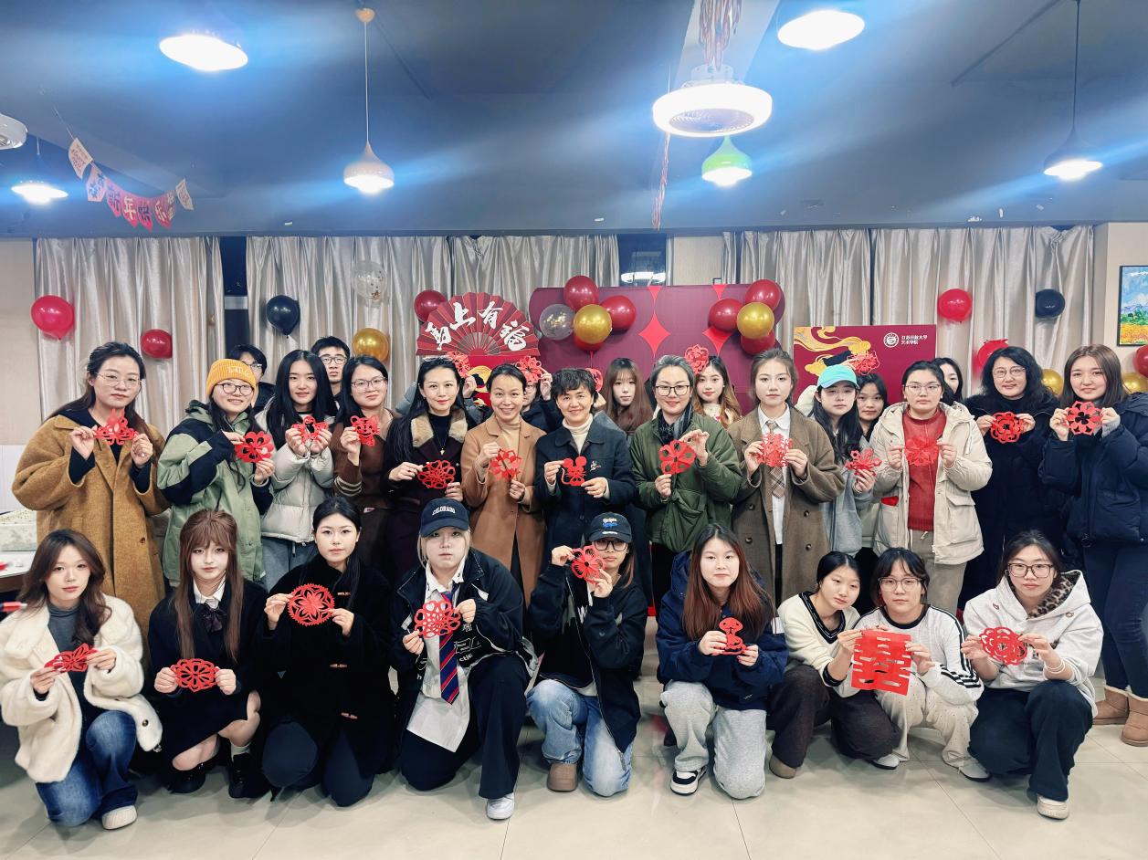 在新年的钟声即将敲响之际,艺术学院“艺韵迎新,绘梦未来”新年联欢活动于12月29日晚在应天校区食堂二楼举行。学院师生欢聚一堂,通过美食制作、才艺表演、趣味游戏与非遗剪纸体验等丰富多彩的活动,共同迎接新年的到来。活动伊始,师生们在签到区领取专属幸运号码牌并有序入场,活动现场被划分为主舞台区、美食DIY区、非遗剪纸体验区等多个区域,精心的现场布置与师生的欢声笑语交织成浓厚的新年景象,现场洋溢着欢乐温馨、喜庆祥和的节日氛围。美食暖场,巧手迎福活动在充满烟火气的“美食DIY”环节中拉开序幕。师生们分组协作,亲手包制饺子和春卷。大家边学边做,交流着技艺和家乡的过年习俗,现场其乐融融。随后,热气腾腾的饺子和鲜香酥脆的春卷端上桌,师生共同品尝,分享这份亲手制作的美味,温情与喜悦同饺子的香味一道,萦绕在每个人的心间。才艺闪耀,舞动青春才艺表演环节精彩不断。王悠悠同学带来的拉丁舞表演,舞姿优雅灵动,申嘉琪同学的现代舞蹈则活力四射,瞬间点燃全场气氛,引来阵阵掌声与喝彩,充分展现了艺术学院学子的多才多艺与青春风采。李甦、王雨轩同学带来的《海阔天空》《我们的歌》引发全场大合唱,歌声传递着大家对未来的美好期许和