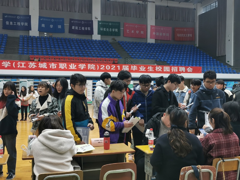 为了有效应对疫情影响下的就业形势,更好助力“六稳”“六保”工作、切实做好学院2021届毕业生就业工作。11月26日,环境生态学院2021届毕业生专场招聘会在应天校区体艺馆举行。学院领导、系主任、毕业班班主任、全体辅导员及140余名应届毕业生参加了此次招聘会。学院招聘会现场分为环境类和园林类两个招聘专区,通过创新“政、校、企”三方联合和“三区联动”合作模式,为学院学生提供了大量的高质量岗位,同时满足企业多元化人才招聘需求。本次参加招聘的单位有雨润控股集团、南京齐春园、南京珍珠泉园林建设、中钢(南京)生态环境技术研究院、苏州百信、江苏实朴和南京泓泰等32家知名企业,共提供就业岗位500余个。招聘现场人头攒动,毕业生们手拿着一份份精心准备的简历,积极向企业推荐自己。企业HR们耐心地与应聘学生进行了亲切地交流,介绍着自己企业的优势,向毕业生抛出他们的橄榄枝。在招聘会现场,学院领导积极与企业招聘人员进行沟通,询问企业提供的岗位信息、人员需求、工资待遇等相关情况,并了解了毕业生的应聘情况,对学生关心的问题给予现场解答。在与企业的沟通交流中,用人单位普遍反映,学院学生在就业时踏实、勤勉,希望能和学院