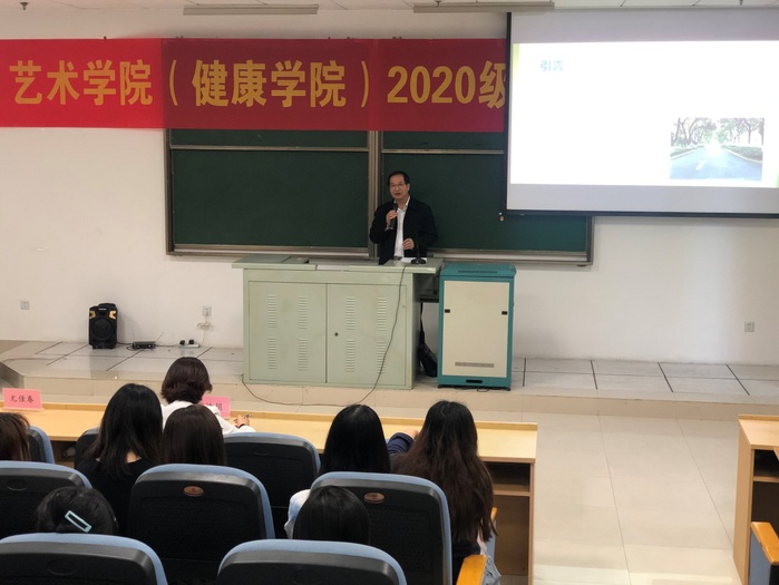 新生入学教育是学生坚定理想信念、适应大学生活、树立发展目标、掌握学习方法的重要“拔节孕穗期”。艺术学院积极搭建育人平台,凝聚育人合力,开展了新生入学教育系列活动,把思想政治教育有力地融入新生入学教育全过程,引导学生培育良好学风,全面培养综合素质,努力扣好大学生活“第一粒”扣子。青春起航,引新生走好大学第一步10月12日,校党委常委、副校长尤佳春为2020级全体新生上“开学第一课”,从大学的学习、心理的调试、为人与处事三个方面,以丰富有趣的事例,深入浅出地给大家介绍了大学教育的特点、心理调节的方法、人际交往的准则,对同学们未来的发展提出了希望和要求,期望每位新同学学会学习、学会相处、学会处事,勉励新生在大学开启新生活、树立新梦想、打造新境界,成为有大爱、大德、大情怀的新时代青年。鲜活生动的开学第一课引发了同学们的共鸣,赢得了同学们阵阵掌声。规矩养成,让新生明了校级校规10月12-13日,学院领导班子成员走上讲台,结合学院发展现状和学生管理特点,认真开展文明修身教育。党总支部书记丁姝娟对学院概况、学生工作等方面向新生进行详细介绍,并希望同学们拥有梦想,明确大学生活目标,让学习成为一种生活方