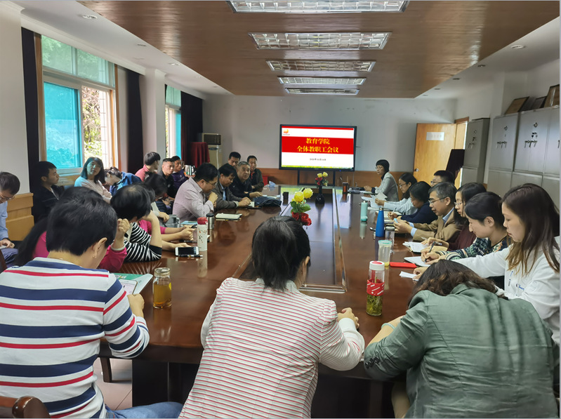 10月14日下午,教育学院在定淮门东校区综合楼411会议室召开全体教职工会议,传达学校会议精神,落实推进学院近期各项工作。会议由学院院长束正煌主持。束正煌院长对学院近期相关工作进行了推进。一是做好新生开学准备工作,要求任课教师严格遵守学校教学秩序,确保新生教学工作顺利开展。二是部署学院课程思政评比活动,要求各系部重视课程思政,动员教师们积极参赛。三是强调学院自主考核50学时工作量认定项目与标准,要求各系部进一步细化落实。四是对学院教师承担江开、高职教学工作量作出安排,建议承担高职教学工作量不低于教学工作量标准的一半。五是商定各系部本学期工作计划。六是推进“十四五”规划的调研和编写工作,要求各系部至少组织一次外出调研,依据学校“十四五”规划着手。七是解读学校下发的本年度学院目标责任制考核指标征求意见稿,要求各系部有目标地开展相关活动,全体教职工做好日常工作材料的存档工作。俞金元书记就防疫、巡察、安全值班等事宜进行了安排。一是持续做好疫情防控各项工作,要求全体教职工保持信息畅通。二是通报巡察工作情况,再次要求全体教职工认真对待,积极配合。三是做好安全值班工作,要求值班人员认识到值班的重要性