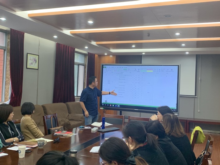 为进一步优化外国语学院开放教育商务英语专业(专升本)人才培养方案、推进应用语言系教科研团队建设,外国语学院应用语言系于2020年10月14日下午,在古平岗校区小红楼二楼会议室召开了开放教育商务英语专业(专升本)人才培养方案及应用语言系教科研团队建设研讨会。研讨会由系部副主任蒋霞老师主持,应用语言系全体教师参加。在商务英语专业人才培养方案研讨会上,袁利副院长对照《普通高等学校本科外国语言文学类专业教学指南》、结合我校开放教育学情和学院师资特点,详细分析说明了商务英语人才培养方案专业进度表中的课程设置框架体系和课程方向归属。随后,与会教师以“课程设置与如何培养商务复合应用型人才”为主题,展开了深入讨论与交流。通过本次研讨,激发了系部教师参与学院学科专业课程一体化建设的热情,为后续商务英语专业在线课程建设注入了强劲动力。在教科研团队研讨会上,蒋霞老师带领全系教师学习了《外国语学院教科研团队管理办法》,说明了团队负责人遴选方式和工作职责,强调了应用语言类教科研团队应侧重学科专业建设和理论研究。通过本次研讨,进一步聚焦了系部两个教科研团队的科研方向,明确了教科研团队职责,也将促进教科研团队专业建