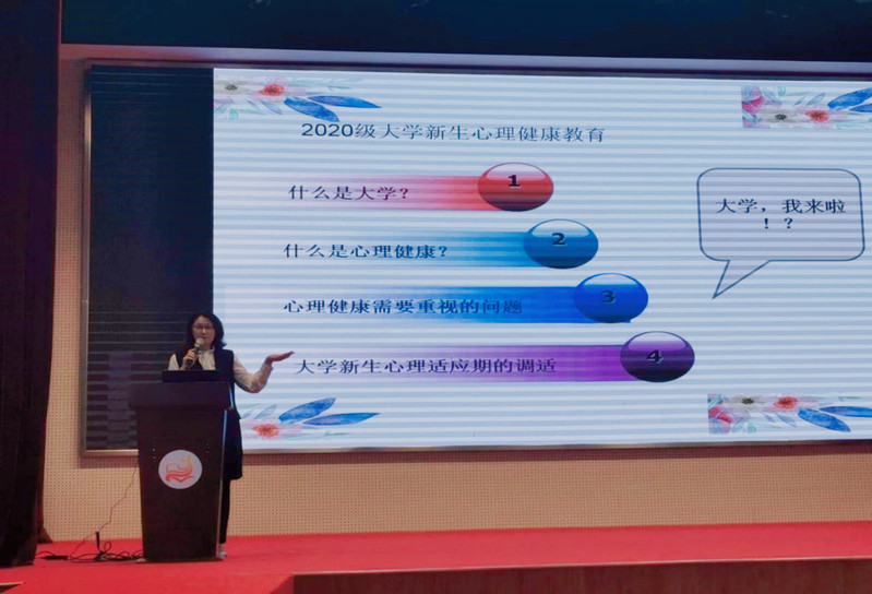 为使2020级新同学更好地适应大学新生活,提高新生在新环境下的学习、生活能力,树立正确的人生目标,10月12日下午环境生态学院在体艺馆开展大学新生心理适应教育。由学院心理辅导员高媛媛老师主讲,主题是2020级新生们如何更好地适应和融入大学生活。讲座由党总支书记段英主持,全体辅导员和新生参加了讲座。 讲座以测试专注力的互动方式开始,让现场的气氛顿时变得活跃起来。接着高老师以清新自然的语言为大家娓娓道来,通过探讨大学和心理健康的定义,引导同学们进入了今天的讲座主题。高老师首先系统介绍了心理健康的标准以及从高中生到大学生角色转变后可能会出现的心理困惑,并强调理想与现实是有误差的,环境变化产生心理的不适应是必然的,大家要正面困难,调适自己的状态。继而高老师就角色和环境改变后出现的人际交往,心理波动等常见问题详细地提供了解决的方式和渠道。表示进入大学我们必须从思想上认识到大学要学会正确地认识自己,做好自我管理和学习规划,打造自己的优势。她告诉同学们在遇到心理不适而自己难以克服时,要主动勇敢地寻求专业咨询和帮助。最后,高老师以“长风破浪会有时,直挂云帆济沧海”勉励同学们努力学习,利用大学的美好时光