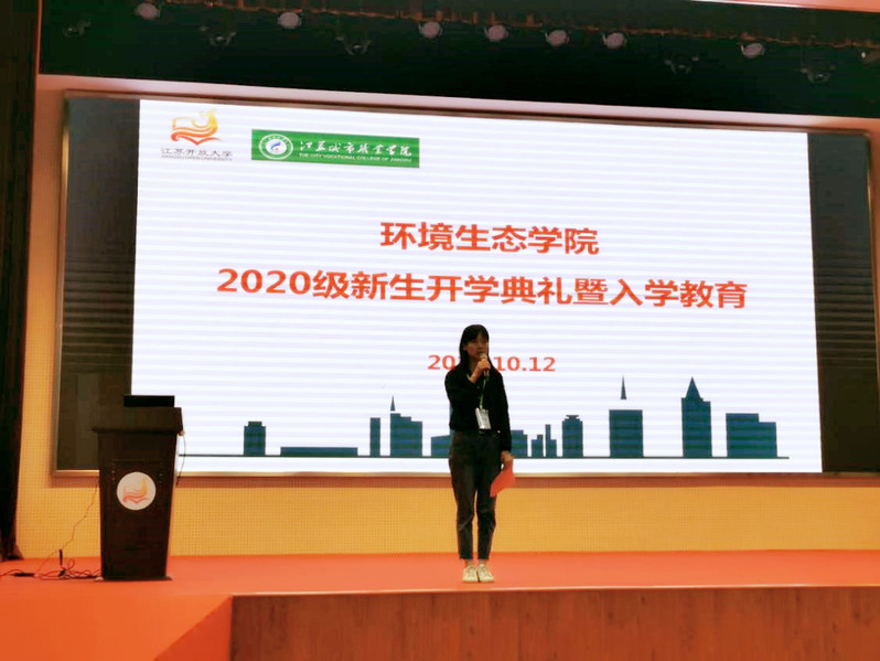 为指导和帮助2020级新生尽快了解和适应新环境,,顺利平稳地实现角色转变,更快的融入大学生活,环境生态学院于10月12日在体艺馆406举办新生开学典礼暨2020级新生入学教育,学院段英书记主持典礼,叶海跃书记、谢伟芳主任、高媛媛老师和2020级新生辅导员陈涛涛以及全体2020级新生参加了典礼。典礼伊始,段英书记代表学校以及学院全体教职工向全体新生表示热烈的欢迎,并介绍了学校的基本情况,随后段书记代表干方群院长做了院长寄语,希望同学们在未来三年的学习生活中找准方向,为实现自己的目标而不断努力,做新时代的建设者和接班人。在新生入学教育上,辅导员老师对学校的各项学生管理规定进行了介绍,重点进行了在校安全教育,提醒大家在学习生活中注意自己的信息安全、财产安全、人身安全,并讲述了“徐玉玉事件”和校园贷的案例,随后高媛媛老师对新生进行了心理适应教育,分享了大学生在大学时期可能出现的心理状态与自我调适方法,并欢迎同学们随时和老师沟通。最后,叶海跃书记介绍了环境生态学院的总体概况、师资力量、教学条件、学生成果、学生社团,并向同学们介绍了江苏开放大学开放本科学习的内容和学习模式,鼓励大家突破自我,实现学