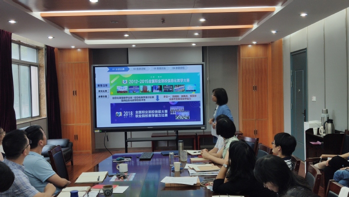 9月22日下午,外国语学院分工会在学院党总支部的领导下,举办了推进学院“教学研共同体”建设沙龙活动第3期。活动由外国语学院分工会主席孙雪羽主持,张美娟、蒋中林、朱琼老师主讲。本期“教学研”活动主题围绕教师能力比赛展开。今年,张美娟老师率领的比赛团队今年获得了江苏省职业院校教师教学能力比赛二等奖的佳绩,她就认识比赛、备赛过程、备赛方法、参赛感悟四个方面向大家做了详尽的展示与无私的分享。老师们被张老师专业的信息化教学能力和钻研的敬业精神所深深折服,纷纷表示要向张老师多多学习和请教,收获颇丰。随后,团队成员蒋中林老师就参赛感悟和参赛教学视频的拍摄和制作过程向大家作了详细的分享和介绍。她说,“这是一次极富挑战的比赛,备赛的过程有很大压力、很多碰撞,也有很多收获。通过这次比赛,我认识了全国非常多优秀的同行、先进的教育教学理念和精巧的教学设计,这是认识上的收获。备赛期间,我聆听了专家的悉心指导,解锁了新技能,这是技能上的提升。回到我们自己的作品上,我与队友们互相鼓励、支持、碰撞火花,我感受到团队的力量和自己思维定式的打破。总之,这是一次难得而难忘的经历。”随后,在“悦”享读书环节,朱琼老师分享了著
