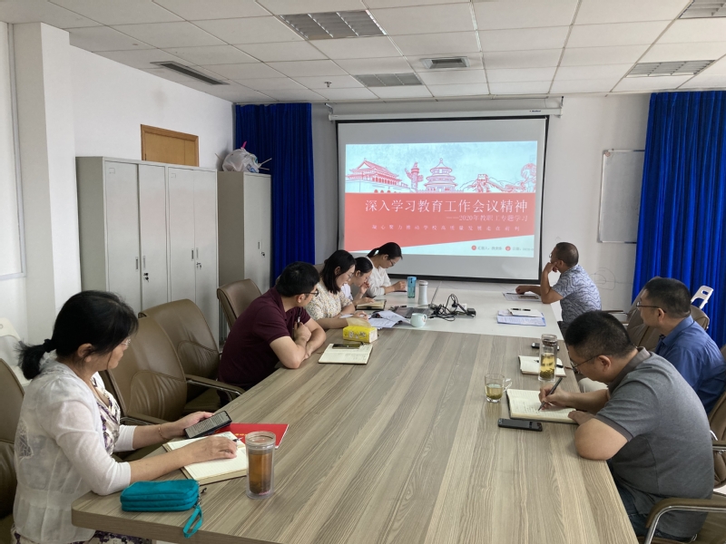 为进一步深入学习教育工作会议精神,奋力开创高水平开放大学科研工作新局面,在9月10日教师节当天,机关七支部科技处、老年文化与艺术研究所两个部门在定淮门校区918会议室开展主题为“深入学习贯彻全国全省教育工作会议精神,凝心聚力推动学校高质量发展走在前列”的专题学习研讨活动,活动由陈冰月主持。会上,科技处颜秉姝首先带领大家深入学习了2020年全国教育工作大会和2019年我省教育工作会议精神;然后,通过聚焦三步走战略规划、十二项基础建设工程等重点内容,重温了我校第二次党代会精神;最后,她结合“立德树人”和科研管理工作的职责,从增强服务意识、强化担当意识等两个方面发表了个人学习体会。在集体讨论环节,多位同志都分享了个人心得体会。老年文化与艺术研究所所长周振华表示理论学习就是要做到常学常新,才能更好的知行合一。服务意识与担当意识是教育工作者需要坚守的。科技处处长孙旭表达了对本次专题学习研讨活动的认可,他表示在学习过程中,大家敞开胸怀,踊跃发言,有益于凝聚共识,打造有温度的工作团队。倪晓燕就2020年全国教育工作大会中对继续教育的要求谈了体会,她提出继续教育要把握供给改革的问题,着力提升供给能力和